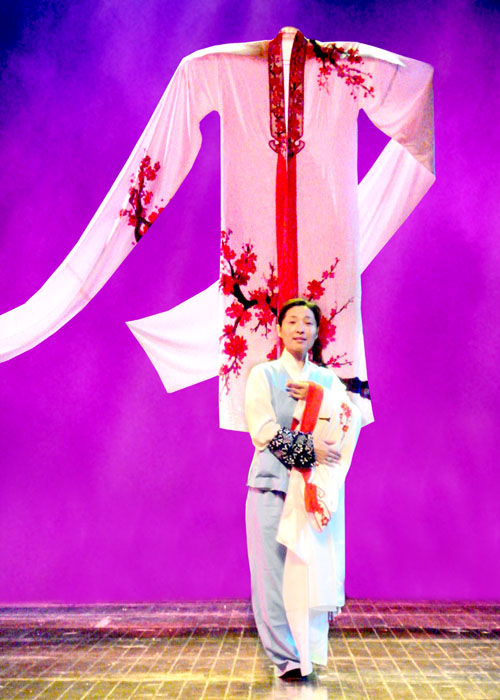 青年时报11月8日讯:一件巨大的戏服高高悬挂在半空,似乎浓缩成一个戏曲艺术的符号,最后这件戏服又在天幕上,幻化成无数件小戏服……