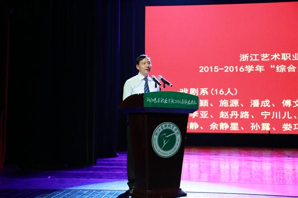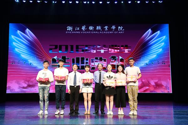 毕业典礼上,还宣布了与毕业生有关的系列荣誉并颁发证书,包括2015-2016学年综合展演季优秀学生、2016届优秀毕业论文、2016届院级优秀毕业生、2016届省级优秀毕业生、国家奖学金获得者名单等,院长黄杭娟、副院长章轲、纪委书记夏开堂分别为毕业生颁奖。黄杭娟为毕业生颁发了毕业证书。
