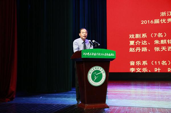 毕业典礼主持人、副院长沈恒的主持词也充满了情感,“感谢你们当初选择和加入浙艺,让学院更具活力;感谢你们的勤勉和朝气,让学院更添魅力;感谢你们的付出和成绩,让学院更具实力。希望你们永远珍藏大学里的难忘时光,珍惜彼此结下的深情厚谊……”
