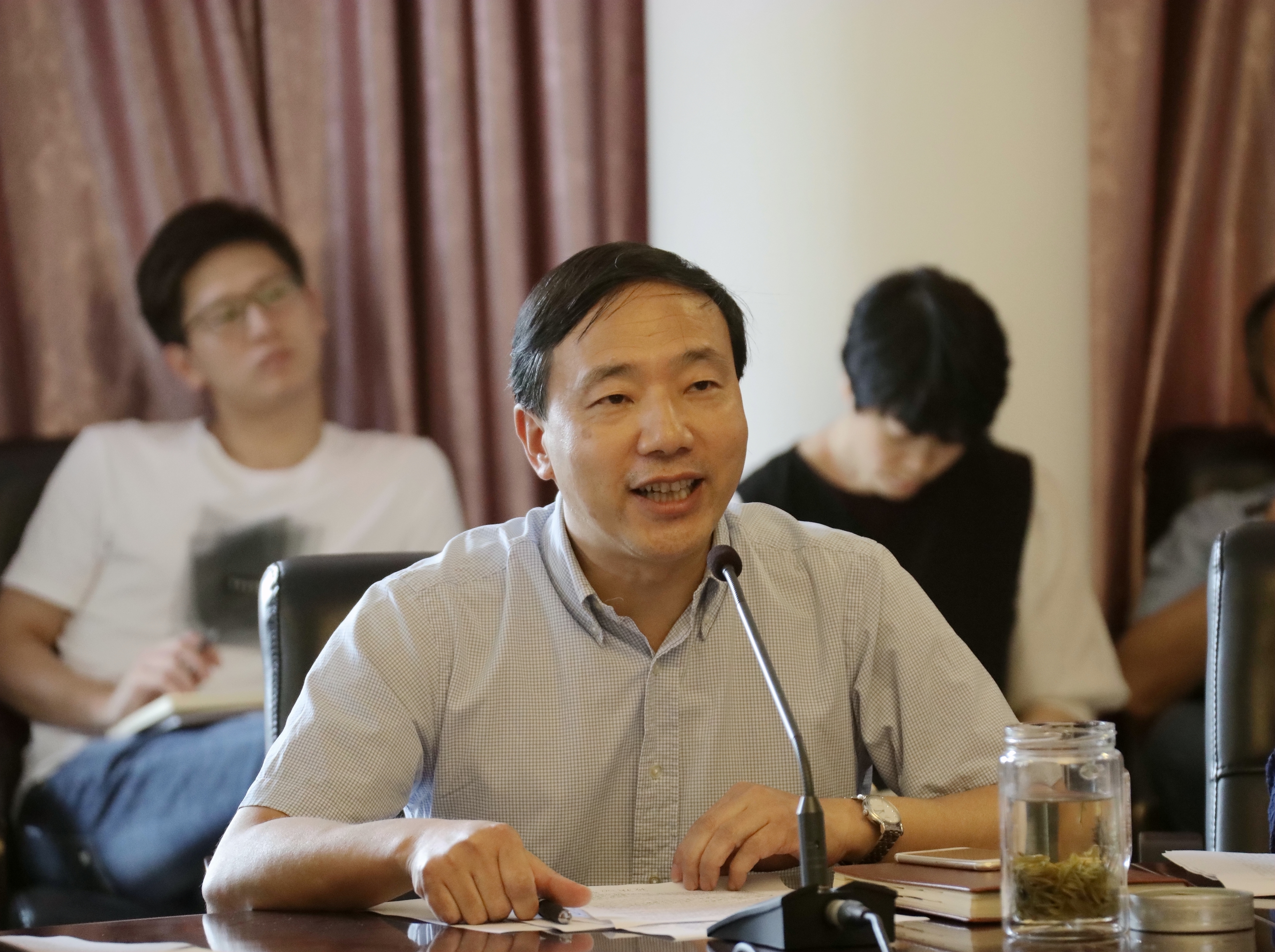 会上,党委班子成员夏开堂、章轲、沈恒、徐芳、沈军甫、王涛、马向东,教务处副处长(主持工作)周应中、社科部负责人刘秀峰、美术系党总支副书记、副主任孙煜珑等结合立德树人、美育教育、思政理论课主渠道作用、课程思政、艺术职业院校的机遇、使命和担当等畅谈学习体会和感悟。
