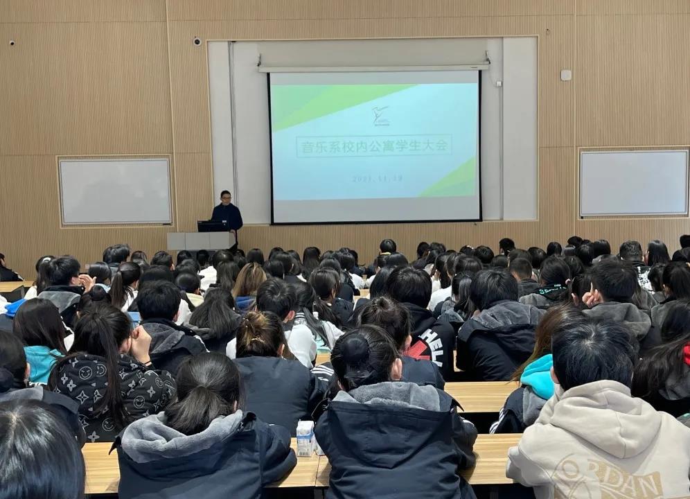 为进一步增强音乐系中专段学生管理,11月19日中午,音乐系召开校内公寓学生大会。学工部(学生处、保卫处)附中学生科科长颉顺虎,音乐系中专段班主任、辅导员出席,全体入住校内公寓学生参加。会议由音乐系党总支专职副书记刘梦伟主持。