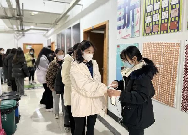 考生有序排队、测温、人脸识别签到