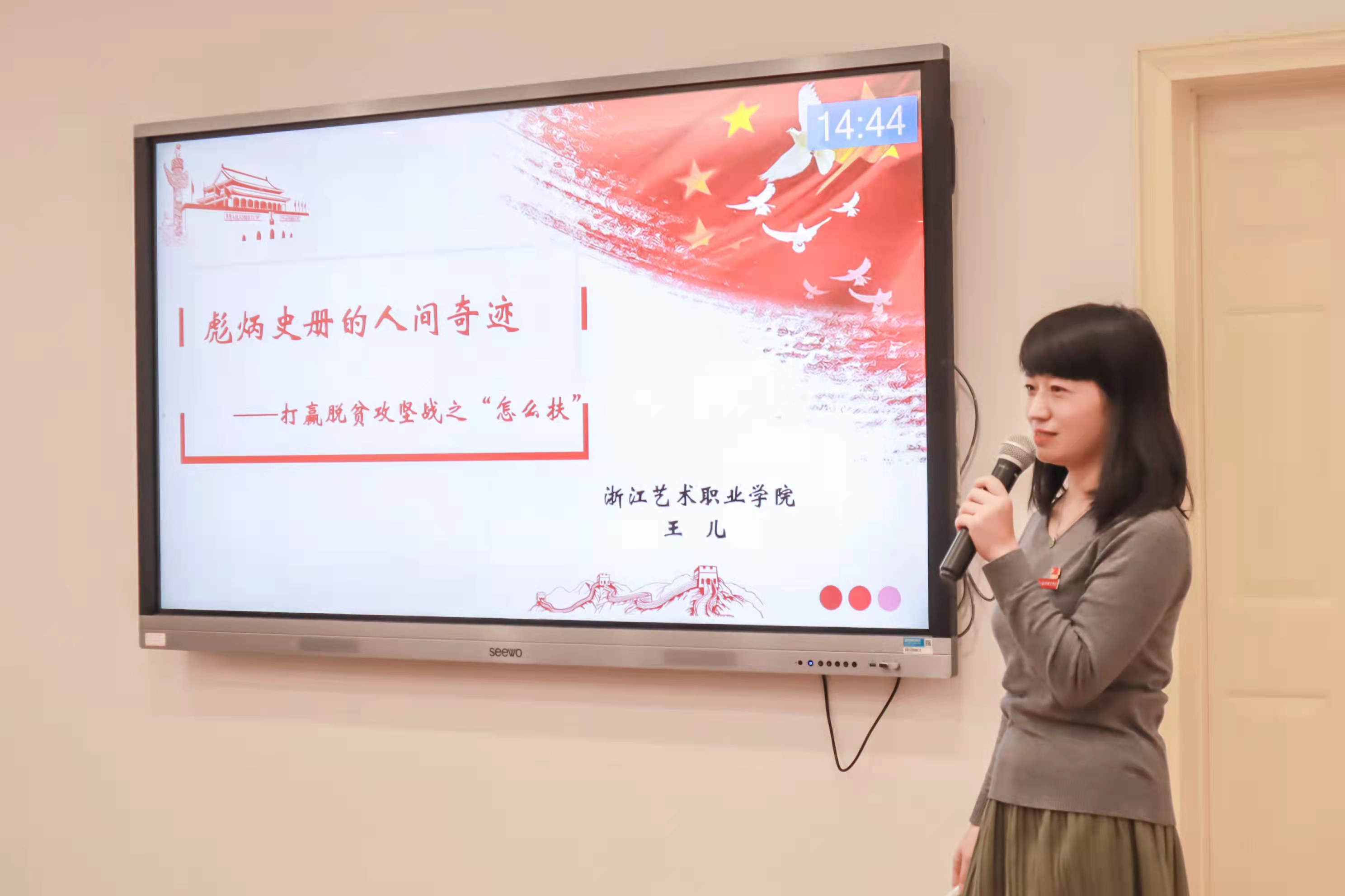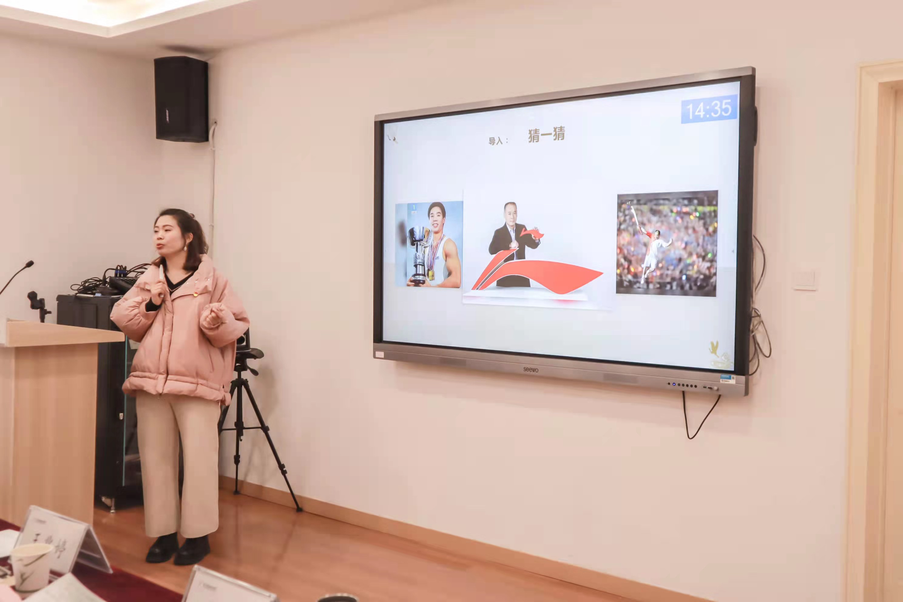 社会科学部副主任胡卓群介绍了学校概况和社会科学部近年发展情况,指明活动目的与主旨。社会科学部全体专职教师按此前抽签顺序依次进行教学展示。蔡秀从四大文明古国中唯有中华文明源远流长的角度阐释了新时代青年大学生为何以及如何坚定文化自信;高小伶通过展现李宁作为国产运动服饰潮落潮起的现象,理性分析了国潮“昨天”“今天”和“明天”境遇不同的原因以及中国创新经济中供给侧改革的必然性和必要性;陈丽丽以“七一勋章”获得者吕其明的四个梦想和“浙江好人”崔泽文的英雄事迹讲述道德模范的榜样力量;张义莎通过比较1933年上海的《东方杂志》和2013年中央电视台“个人梦与中国梦的征集活动”的“征梦稿”,层层剖析了不同年代不同阶层人们的不同梦想,引导同学们将个人梦想与社会梦想紧密结合,用文艺梦助力中国梦;王儿以热播电视剧《山海情》为导入,深入分析了打赢脱贫攻坚战中“怎么扶”的问题;刘志强从技术创新的视角讲述了中国高铁在“追跑”“并跑”和“领跑”的历程,刷新了同学们对“改革创新是新时代的迫切要求”的新认知;孙彪从市场经济理论分析的层面上论证了疫情大考下,中美两国经济体制的优劣之分;胡芊结合学情校情,分析了抗战年代、建设年代以及新时代不同文艺工作者相同的“为人民服务”的家国情怀。