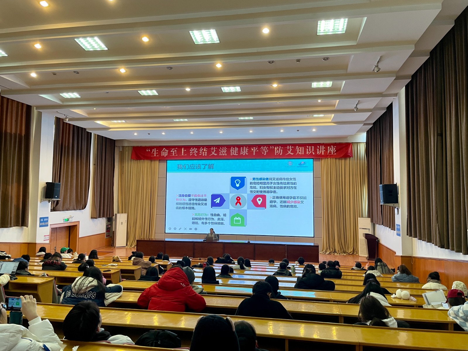 防艾知识讲座。12月2日,校医务室阙锦芳医生给全校的心理委员们开展了“生命至上 终结艾滋 健康平等”主题知识讲座。阙医师介绍了艾滋病的流行现状,通过一系列真实可靠的数据,从多种角度对当前艾滋病的感染人数、感染人数分布比例以及感染群体等问题进行了分析,让同学们对艾滋病的基本知识及当下艾滋病的现状有了基本了解,还为同学们科普了艾滋病的主要传播途径,强调了青少年该如何预防艾滋病。通过这次讲座活动,同学们对艾滋知识有了更全面深入的了解,进一步提高了同学们的防艾安全意识与健康素养。