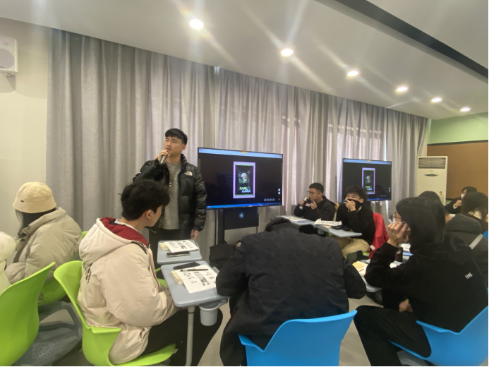 12月6日下午,社会科学部副主任、《马克思主义基本原理》课程主讲教师胡卓群8707智慧教室开展“我眼中的马克思主义”海报设计》实践教学活动课,课上邀请到美术系广告设计专业带头人、视觉传达设计专升本班班主任叶峰泉副教授作专业点评,美术系2021级视觉传达设计专升本班39名同学进行原创海报设计作品展示。