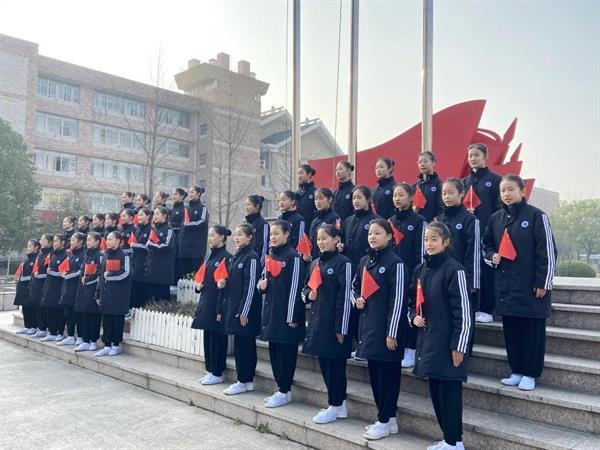 学生会主席黄霜霜带领戏曲学院全体学生进行国旗下宣誓,明史立志,以铮铮誓言致敬建党100周年。作为浙艺戏曲人,他们将练就过硬本领,砥砺从艺初心,为传承和弘扬中华优秀传统文化、建设社会主义现代化强国贡献自己的青春力量。在2019级小百花班全班同学带领下,戏曲学院师生同唱一首歌《没有共产党就没有新中国》。2019级小百花班陈子心和2017级越剧一贯班张宁说:“通过庄严的升旗仪式,我们深深意识到,作为未来祖国发展建设事业的接班人,我们要从当下、从自身做起,精艺修为,明德立志,以自身作为致敬建党百年。”