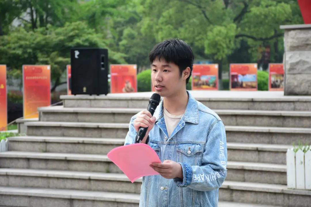 20广告3+2班赵芷量作为学生代表发言。他认为,作为美术学子要认真学习党史,感悟前辈荣光,勇立时代潮头,争做时代先锋,以最优越的姿态,以最饱满的激情,在党史学习中探寻时代前行密码,做有担当的新时代青年。
