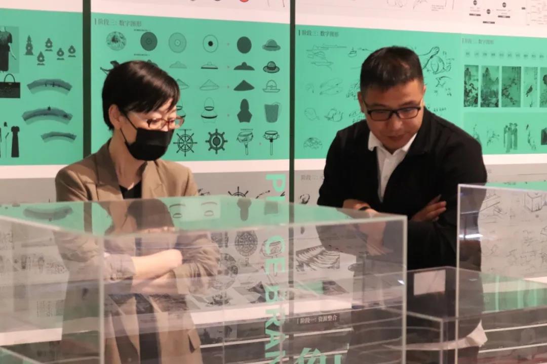 美术系教师纷纷驻足于展览作品前,欣赏每门金课的教学呈现,细细揣摩作品中蕴含的深刻专业内涵,对比自身的课程教学,找共通共融,找差距优势,在对比学习中进一步明确在专业教学的目标。