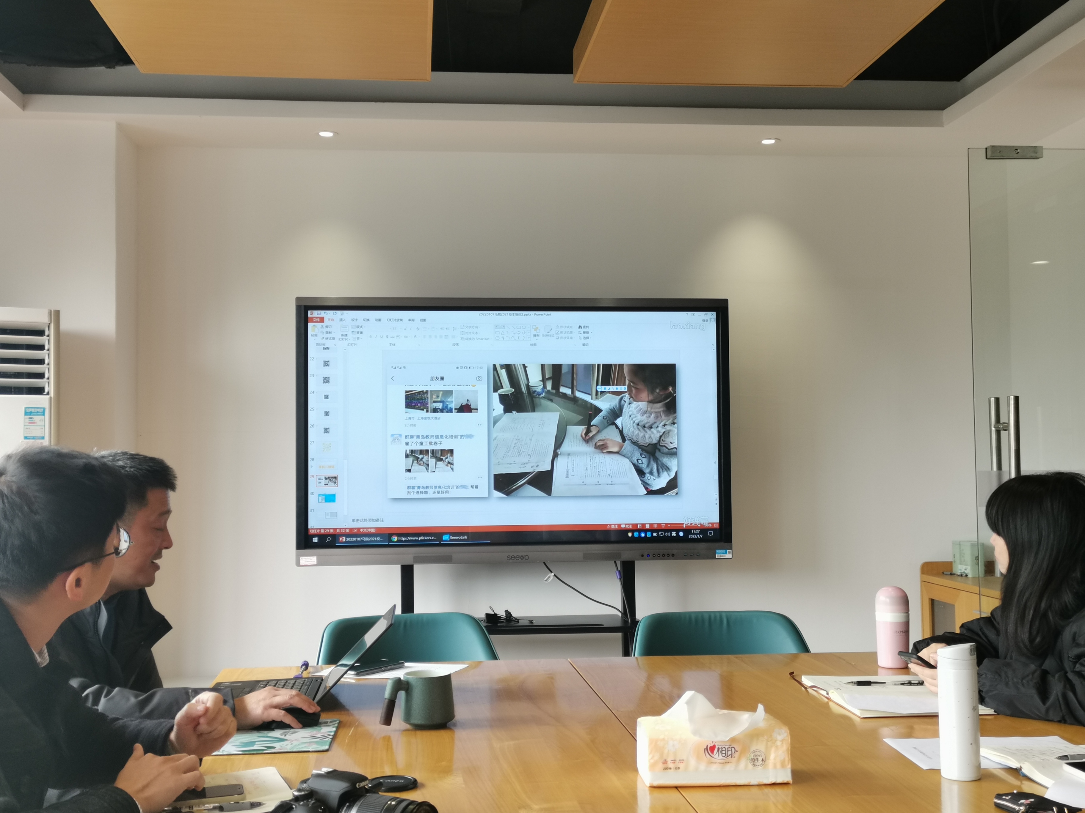 上午在图信中心第一研讨室,图书信息中心主任项骏受邀为全体教师作《信息化条件下课堂互动和形成性评价》专题讲座。项骏通过对“课堂有点酷”“好弹幕”“PLICKERS”等多个信息化教学平台或软件的实操演示,将日常教学过程中所遇到的信息化运用的难题、堵点逐一进行了疑惑解答和技能传授。此次培训是我校继《多媒体资源的极简编辑》后“信息化系列培训”的第二讲,旨在深入贯彻“以学生为中心”的教学理念,提升思政教师信息化教学水平,加强对教学过程的数字化管理,提增课堂教学学生兴趣度和参与度,提高思政课堂教学亲和力和有效性。