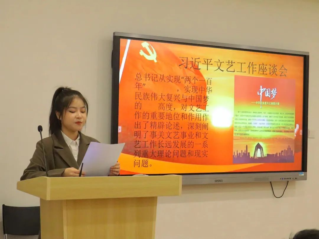 21歌舞班学生陈雯雯结合自身感悟,表达了作为新时代文艺工作者要创造属于我们的文艺时代。