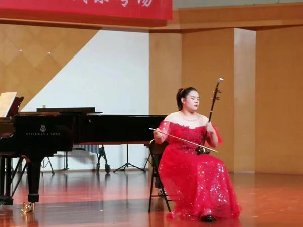 17小音乐班陈开昕带来了二胡独奏《葡萄熟了》,作品旋律清新优美,节奏明快热烈,风格浓郁。生动地描绘了新疆人民在葡萄成熟的季节里载歌载舞喜庆丰收的欢乐场面。