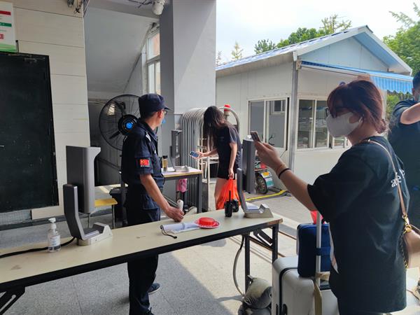 9月12日和13日,我院学生在公寓门口有序扫码报到。