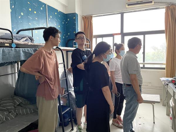9月13日下午,学院党总支书记彭云波、常务副院长郑怡文、党总支专职副书记许瑛及全体班主任、辅导员,走访东冠校区和立志园学生寝室,对同学们的到来表示热烈欢迎,在亲切交流中了解同学们的入住情况和实际需求。