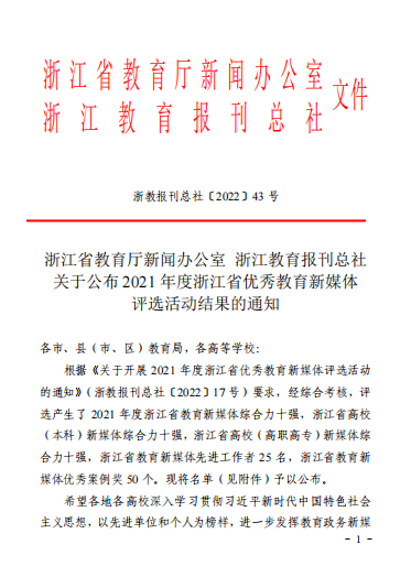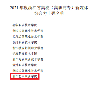 浙艺荣获2021年度浙江省高校(高职高专)新媒体综合力十强!