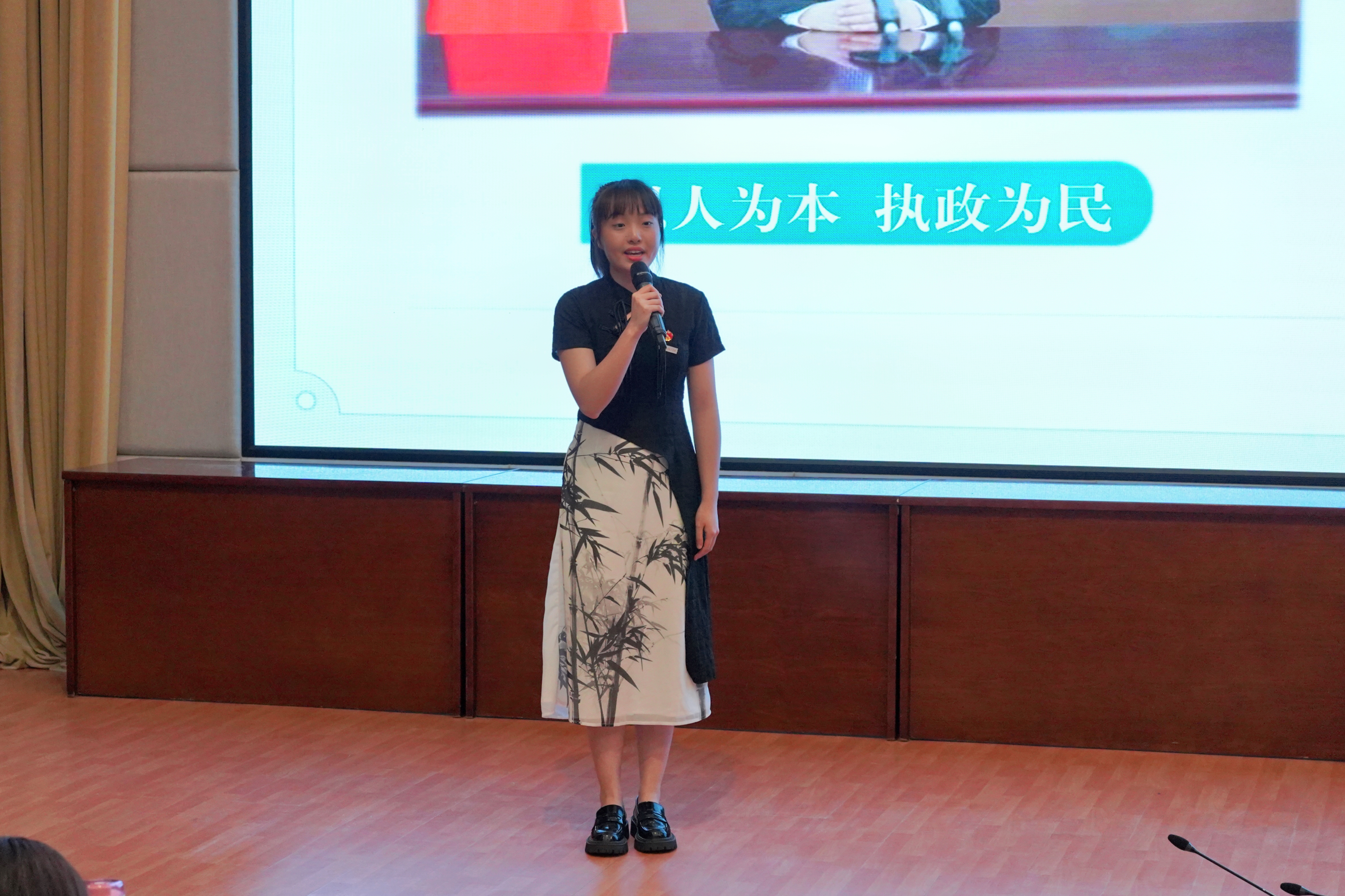 党校校务委员、马克思主义学院副院长、党校教研部主任胡卓群做现场点评。她充分肯定了在各二级学院高度重视、精心准备下选手们所呈现的一堂堂质量上乘、特色鲜明的精彩党课,全面展现了浙艺青年在学习贯彻习近平新时代中国特色社会主义思想汲取奋发进取的智慧和力量。同时,选手们要从更好处理一般性与特殊性、宏观理论与微观实践、简洁线索与繁杂案例、情感与理性的四对关系出发,一起探讨如何进一步提升微型党课质量,也期待选手们和党校学员们在学习和宣传党的创新理论中取得更大的成绩。