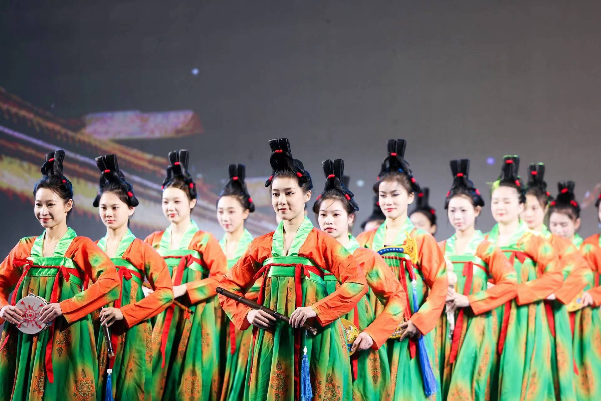 根据主办方主题要求,承担整场演出的演教学院表演艺术专业教学团队积极策划、组织、创排了这台“订单式”的演出节目,通过演出展现表演艺术专业学子“一专多能”的艺术才能。晚会在歌舞表演《龍》中拉开序幕,《龍》将舞蹈、声乐和鼓融为一体,旋律动感,配合默契、整齐划一。2019级表演艺术五年一贯班全体学生一开场就将全场气氛带入高潮。舞蹈、朗诵、歌曲次第登场,原创相声《智能时代》、原创小品《共同富裕山花村》、原创快板《共庆二十大 活力迎亚运》等原创作品让观众印象深刻,现场气氛热烈,掌声不断。