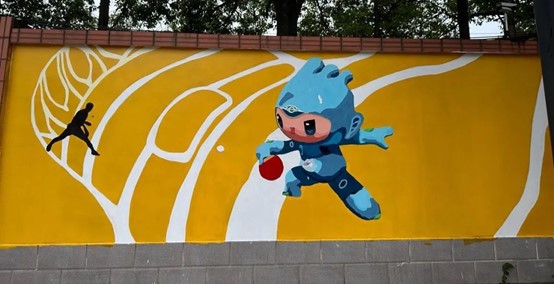 为深入学习贯彻习近平新时代中国特色社会主义思想主题教育,充分发挥高校与社区的合作效能,进一步深化落实党建共建机制,依托专业优势赋能亚运、添彩亚运,6月13日-6月16日,设计学院与滨文社区联合开展“一起来涂‘亚’”墙绘活动。设计学院学生党支部、舞台艺术设计与制作专业师生参加。