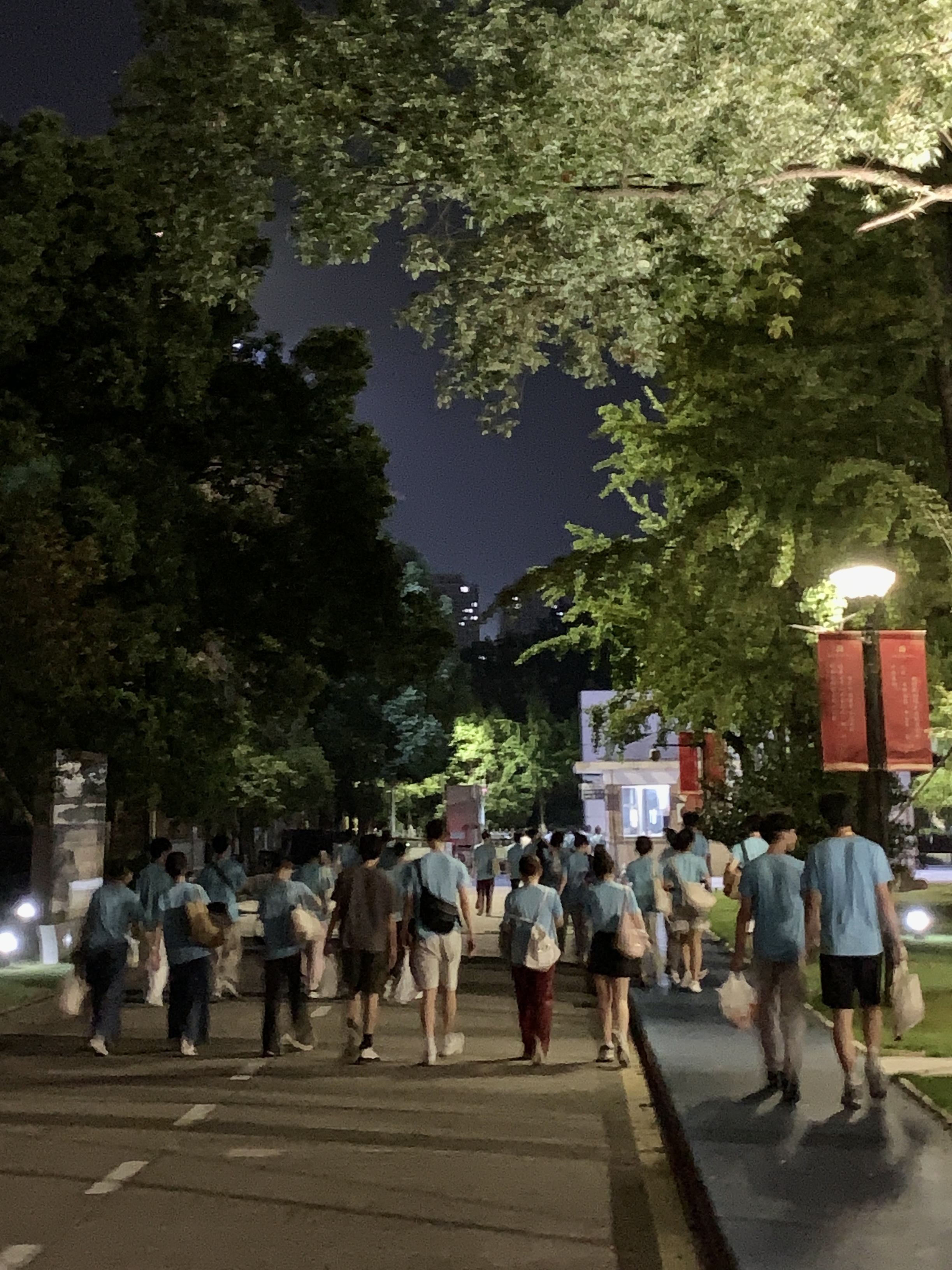 简短的动员后我们迅速进入了漫长的排练,寂静的校园在烈日的灼晒下,陪伴着我们的只有窗外蝉虫的嘶鸣声和墙上倒计时的指示屏。四五个小时的一次排练,每天重复着。进场时的烈阳高照,到离场时的夜雨白花,在潮湿闷热的空气裹挟下,子时才能拖着疲倦的身体回到寝室。几个小时的休息,更多的只是让身体有些许舒缓,脑子里却还在一遍又一遍地回忆着今天的排练过程。超负荷的日子,让我们忘却了许多,累了、痛了,想家了、落泪了……种种的思绪在这不断减少的倒计时面前都显得那么的不重要,唯有支撑的是最初的期许和逐渐产生的与这座城市同频共振的使命感。这种使命感,不仅对杭州,对浙江,甚至对中国都有着无与伦比的重要意义,而我们将是其中的亲历者。