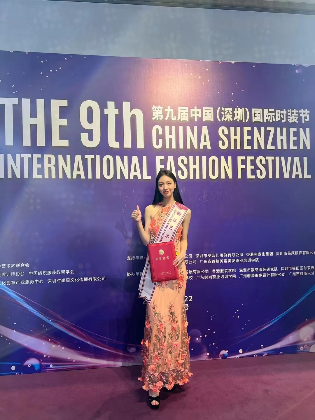 中国大学生服装模特大赛是国内唯一面向在校大学生服装表演专业的国家级模特赛事,是国内高等院校模特赛事的标杆。本次大赛共有来自全国82所本科院校、高职高专院校的105位选手同台竞技,现场通过平面拍摄技巧测试、专业素质测试和泳装、礼服、休闲服等环节展示,评选出一二三等奖和单项奖。余羚瑄现场发挥出色,台风稳健,充满自信,展示了浙艺风采。