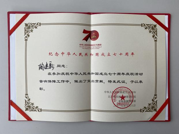 此外,陶建新与他的团队还承担了9月29日庆祝中华人民共和国成立70周年文艺晚会《奋斗吧,中华儿女》、10月1日晚天安门广场联欢的技术支持,更在建国70周年阅兵活动中,精准把控音响设备与流程衔接,确保阅兵现场每一处声音都能清晰传递,让全国观众透过声音感受到大国仪仗的威严与力量。