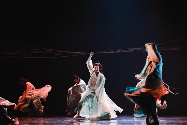 群舞《广陵绝响》以竹林七贤的精神领袖——嵇康为创作原型,以千古绝响的古琴曲《广陵散》为依托,用琴弦搭建出多重舞蹈空间,展现了一段慷慨激昂的古典舞韵,体现了中国古代深厚的传统文化底蕴。