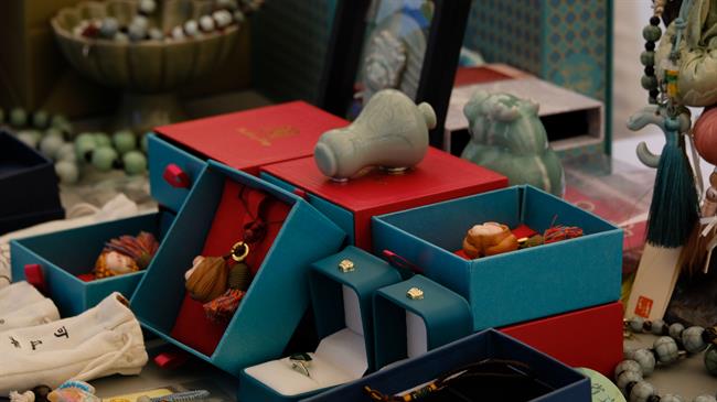 在热烈的掌声中,杨建武敲响开市锣声,“浙艺好市”正式拉开帷幕。来自浙江文化空间发展有限公司、浙江华云文化集团(有意思书房)、浙江省工艺品进出口有限公司(省工艺美术研究院)、杭州晓风图书有限公司等知名文化企业的文创作品、浙艺手艺作品纷纷亮相:复刻文物元素的雅致饰品、融合传统工艺的数字藏品、古籍纹样重构的创意文具……多元载体与创新表达交相辉映,生动诠释着“文物+创意”的无限可能,历史文脉在当代生活的烟火气中绽放出鲜活生命力。
